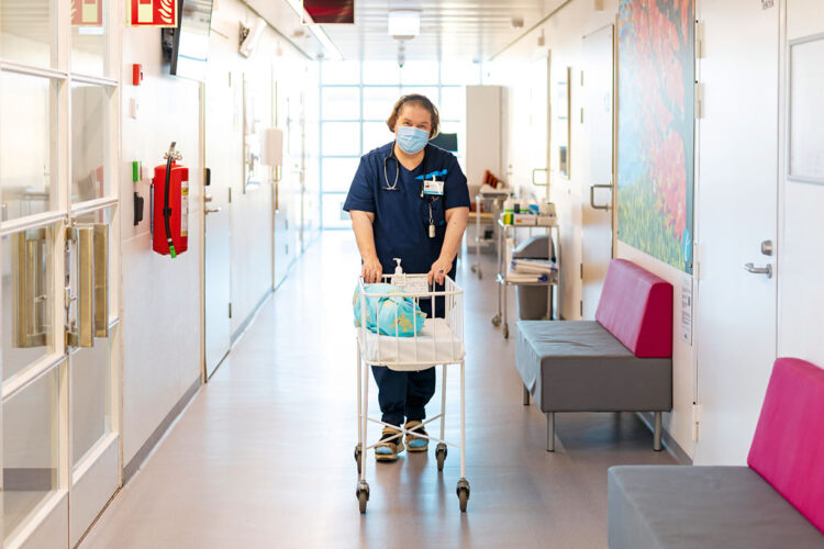 Minna Kuismalle työ Naistenklinikan vastasyntyneiden osastolla on toteutunut unelma. Yksi hoitajan tärkeimmistä tehtävistä on tukea vastasyntyneen ja vanhemman suhdetta.