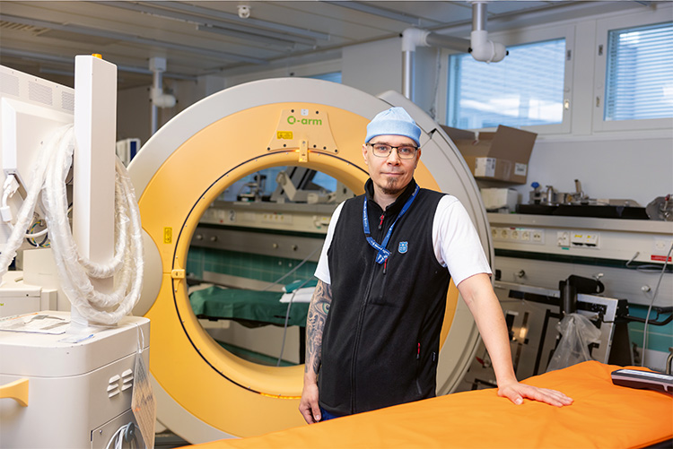 Oulun yliopistollisessa sairaalassa lääkintävahtimestarina työskentelevä Jarno Luukkonen pitää siitä, että tilanteet vaihtelevat ja työssä oppii koko ajan uutta.