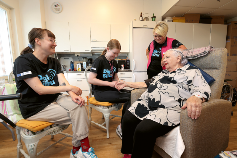 Sataedun lähihoitajaopiskelijat opiskelevat hoitokodissa. Kyseessä ei ole työharjoittelu vaan teorian ja käytännön opiskelu aidossa ympäristössä.
