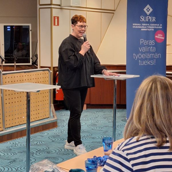 Tänä vuonna mukana on ennätysmäärä luottamusmiehiä, iloitsi tilaisuuden avannut SuPerin neuvottelupäällikkö Pia Zaerens. Puheenjohtaja Päivi Inberg kannusti erityisesti uusia luottamusmiehiä verkostoitumaan. Yhteisestä tapaamisesta löytyy varmasti heitä, jotka painivat samanlaisten ongelmien kanssa.