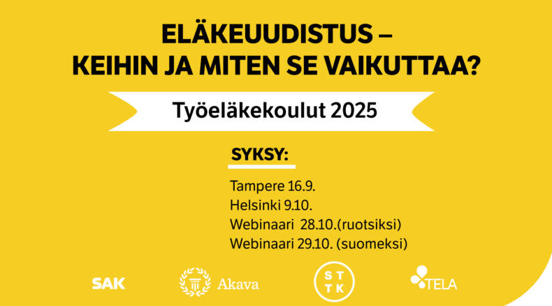 - Tilaisuuksissa ovat puhumassa palkansaajakeskusjärjestöjen ja Työeläkevakuuttajat Telan asiantuntijat.